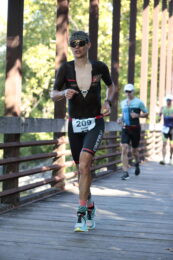 Jetzt also nur noch Laufen. Kurz nach dem Ausgang der Wechselzone steht Steffi und ruft mir meine Platzierung zu. 20. in der AK, 120 Overall. Ok, da könnte etwas gehen.
