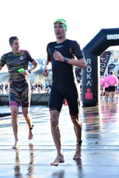 In der Wechselzone sagen sie plötzlich durch, dass das Schwimmen Wetsuite optional ist. Das ist überraschend. Die letzten Tage lag die Wassertemperatur immer bei