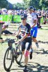 Von der Radstrecke bekamen wir nicht viel mit. Nur, dass es bei Steffi weiter rund lief und es für mich allmählich an der Zeit war, die zweite Wechselzone aufzusuchen. Dort angekommen bereitete mich auf den abschließenden Marathon vor. Gemäß den aktuellen Hochrechnungen sollte ich noch vor 16:40 Uhr loslaufen dürfen. Plötzlich kam Steffi um die Ecke geschossen und übergab mir den Chip. Wir legten tatsächlich die 21. Wechselzeit aller Staffeln hin! Und Steffi unterbot sensationell ihr selbst gestecktes Ziel. Statt knapp unter 7 Stunden benötigte sie nur 6:17:16 für die 180km.