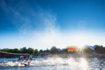 Der Rennsonntag startete früh. Um 4 Uhr klingelte der Wecker und nach einem kurzen Frühstück machten wir uns um 5 Uhr auf den Weg zum Schwimmstart. Unser Staffelstart war zwar erst für 9:05 Uhr angesetzt, doch wir waren uns schon im Vorfeld einig, dass wir bereits zum Profi-Start um 6:30 Uhr am Kanal sein wollten. Denn eins ist gewiss, wenn sich mit dem Sonnenaufgang reges Treiben in der Wechselzone 1 einstellt und die Menschenmassen sich am Kanal und auf der Brücke versammeln, dann liegt eine ganz besondere Stimmung in der Luft. Ein Mix aus Anspannung und Vorfreude auf einen großen Tag ist bei jedem, egal ob Athlet oder Zuschauer, spürbar. Der Schwimmstart ist also ein Muss und wir wollten ihm beiwohnen.