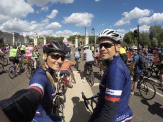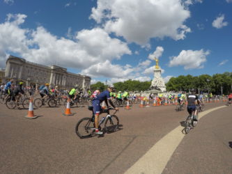 Natürlich konnten wir uns das nicht entgehen lassen und fuhren die Runde gleich zweimal. Zum Glück waren wir recht früh dort, denn gegen Mittag wurde es doch sehr voll, so dass man kaum noch frei radeln konnte. Der beste Abschnitt war definitiv die kleine Schleife zwischen Trafalgar Square und Buckingham Palace. Hier durfte man schon mal den Zielbereich für den kommenden Tag visualisieren. Nach den zwei gemütlichen Runden ließen wir es aber gut sein und begaben uns zurück ins Hotel. Schließlich stand für den nächsten Tag eine lange Ausfahrt an und die Räder mussten auch noch hergerichtet werden.