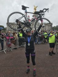 Im weiteren Verlauf versuchten wir natürlich stärker verschmutzte Stellen zu meiden. Wir kamen auch einigermaßen gut voran und trotzten Wind und Wetter. Besonders bei den Abfahrten musste man jedoch sehr vorsichtig sein, da es immer wieder starken Seitenwind gab. Zudem machte einem der kühle Fahrtwind zu schaffen. Glücklicherweise blieb es tatsächlich bei diesen zwei Reifenpannen und als wir über Wimbledon wieder nach London reinfuhren hörte es tatsächlich auf zu regnen und sogar die Straßen trockneten etwas ab, so dass wir es die letzten Kilometer nochmals richtig laufen lassen konnten und mit Spaß dem Ziel entgegen flogen. Als wir schließlich auf die Zielgerade einbogen und auf den Buckingham Palace zufuhren waren die Strapazen natürlich erstmal verdrängt. Wir waren überglücklich, dass Ziel erreicht zu haben. Die Distanz und auch die Strecke waren überhaupt nicht das Problem. Einzig das Wetter machte es mental hart und die ständige Sorge um die Reifen nahmen einem doch einiges an Vergnügen. Schließlich sind wir mit je einem Platten gut durchgekommen. Später im Hotel trafen wir andere Fahrer, die teilweise bis zu