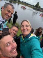 Nach dem Zieleinlauf tauschten wir uns aus. Auch wenn wir als Team unterwegs waren, so hat doch trotzdem jeder seinen Tag anders erlebt und es gibt viele Geschichten zu erzählen.