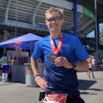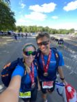 Wie sie später erzählte, war die Übelkeit bei ungefähr der Hälfte des Laufs zurückgekommen. Da sie aber ihr Zeitziel nicht aufgeben wollte, wo sie doch auf einem so guten Weg war, wurde es ein harter Kampf. Im Ziel (und auch die Folgetage) war sie dementsprechend zerstört. Alle Energiereserven aufgebraucht. Um so höher ist ihre Zielzeit einzustufen. Unser Ausflug zum Ironman 70.3 Duisburg war also ein toller Erfolg!