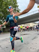 Steffi machte einen guten Lauf und kam ebenso zufrieden ins Ziel. Wahrscheinlich war es ihr bestes Laufergebnis bei einer Halbdistanz. Zwischenzeitlich zeigte der Tracker sogar einen Laufsplit von unter zwei Stunden.