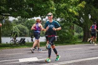Nach wenigen Kilometern erblickte ich Astrid und Matthias am Streckenrand. Welch eine schöne Überraschung! Damit hatte ich nicht gerechnet! So gab es also auf jeder der drei Laufrunden einen weiteren Fixpunkt, auf den man sich freuen konnte. Ich lief aber zu zögerlich an. Am Ende stand eine Laufzeit von 1:30:00. Das hätte schneller sein sollen, aber insgesamt war es für mich ein akzeptables Ergebnis. Schließlich ging es mir eher um ein schönes Triathlon-Erlebnis. Und das war es. Nur von der Laufrunde hatte ich mir etwas mehr erhofft. Schade, dass es ein ganzes Stück eher durch ein Gewerbegebiet ging anstatt ans Moselufer.