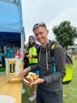 Im Zielbereich sahen wir auch nochmal kurz Astrid und Matthias für einen kurzen Plausch, bevor wir uns zu den Duschen und zur Zielverpflegung begaben.